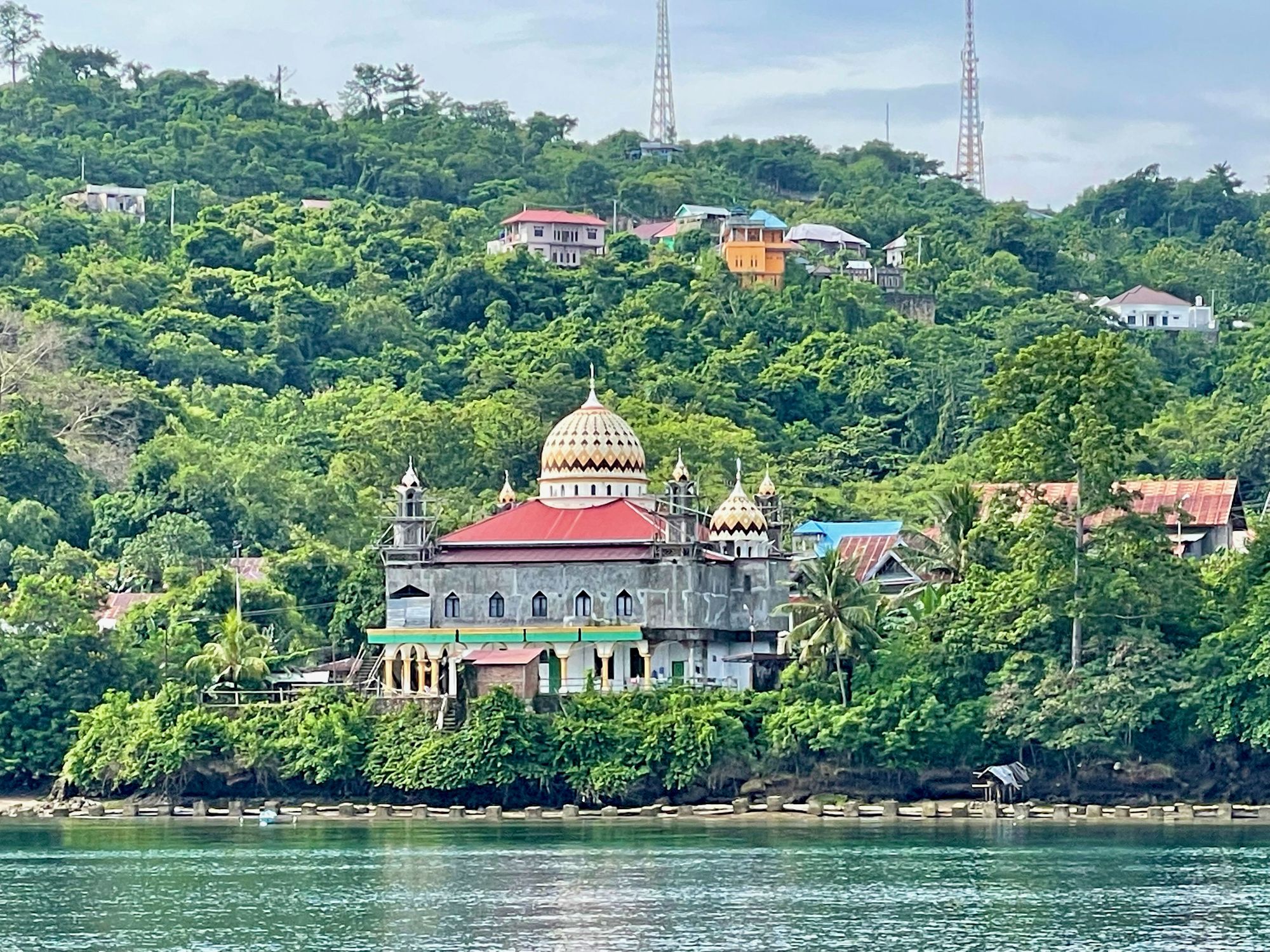 We anchor in the bay right in the middle of town and are surrounded by colourful mosques competing for the title of loudest five times a day, from 4.30 am until 8pm.