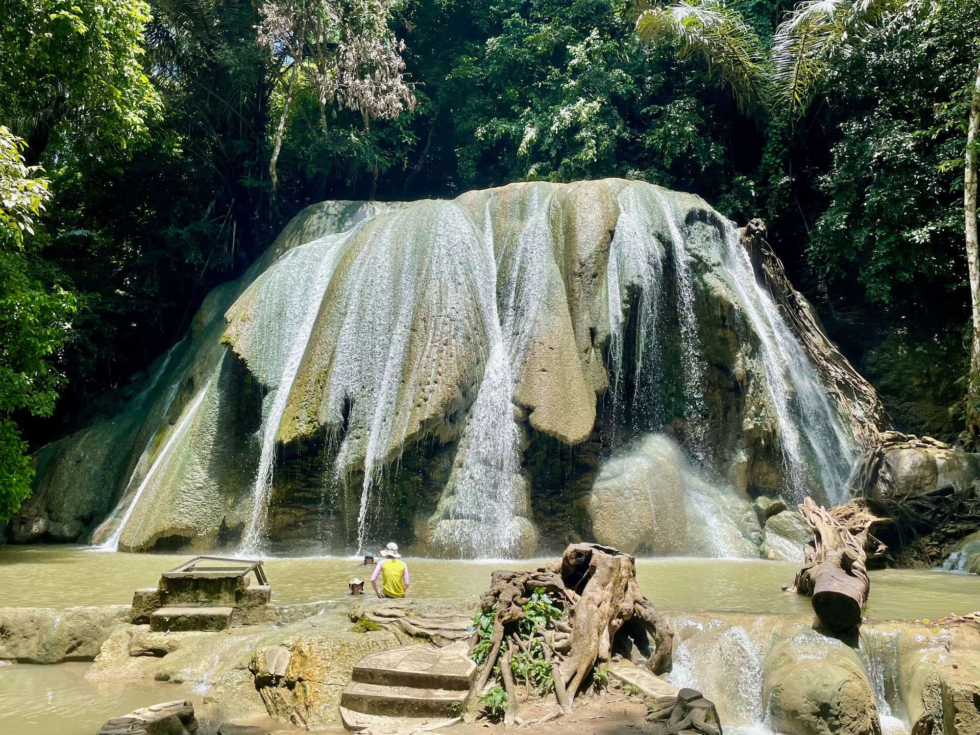 The next day we are determined to complete the birthday celebration so the kids and I cook a hearty breakfast of eggs, tomato and spinach then head to the waterfall for a swim. It’s a beautiful sunny day and after a short walk along the shady main road, we soak in large pool underneath the cool cascades thundering down the imposing limestone cliff. A couple of local boys arrive a bit later to wash their hair and after soaping up, chuck the shampoo bottle into the surrounding bush. Ah the serenity.
