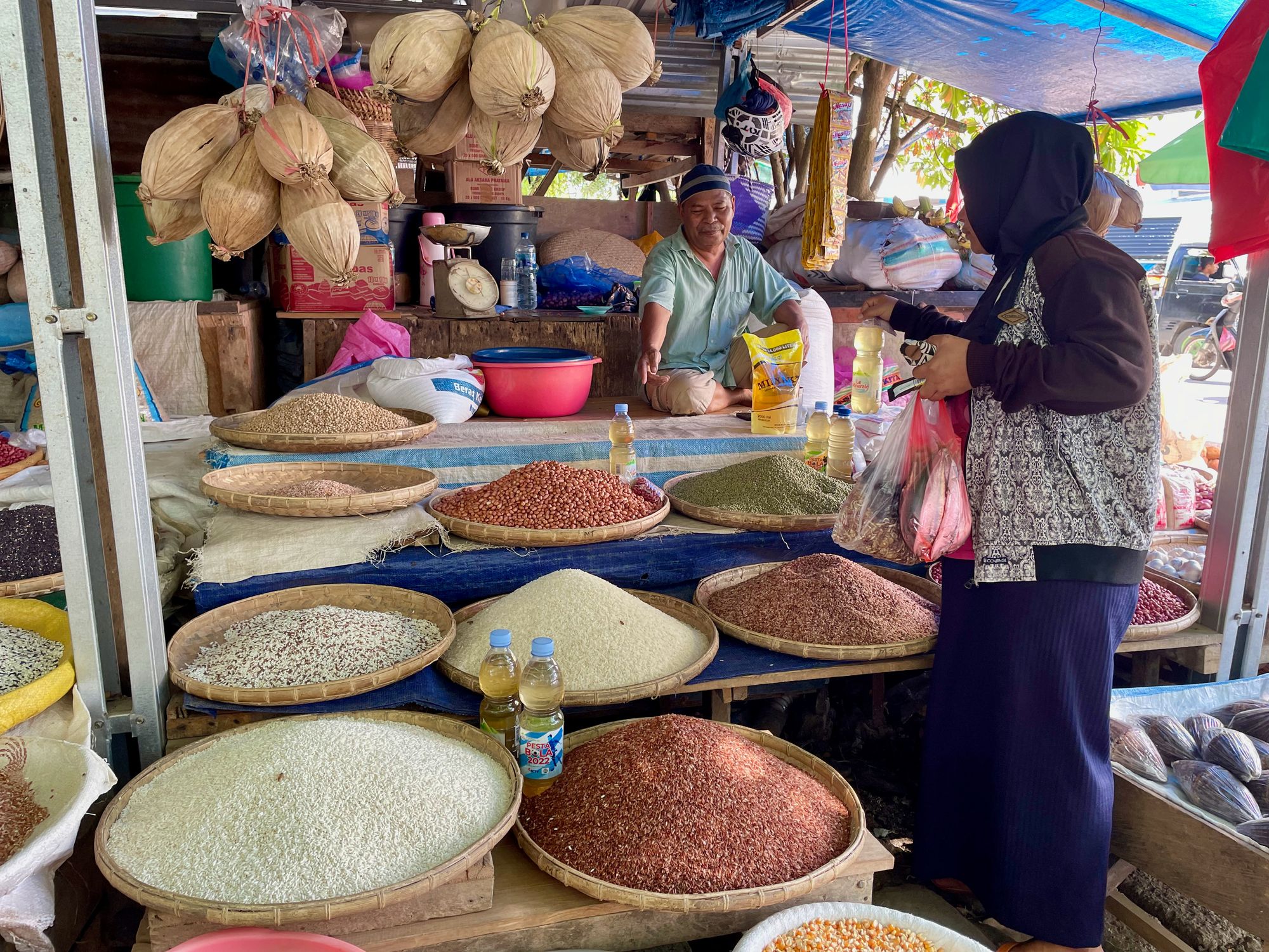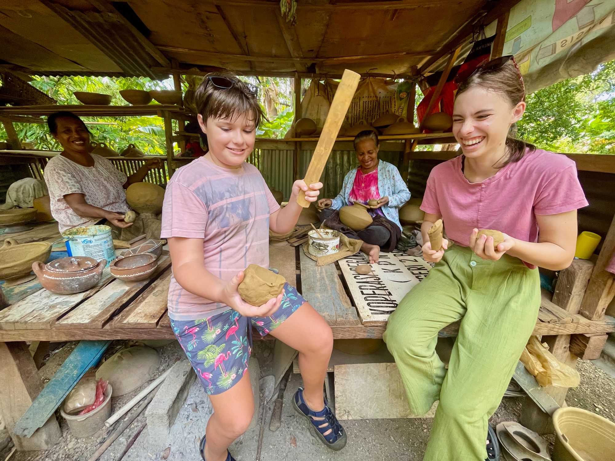 The last few days in Bau-bau are a lot more pleasant. Salam takes us on a tour of local artisans, and we visit a pottery village where women make water jugs, pots and ovens out of local limestone clay in very modest surroundings. They create only when calm and content as the art suffers otherwise. It is passed to the next generation if they ask to be taught and never forced. The women chat while shaping bowls out of round lumps of clay with nothing more than stones and bamboo sticks. We leave with a round bottomed clay water jug which will be a challenge to store on the boat but which I had to have.