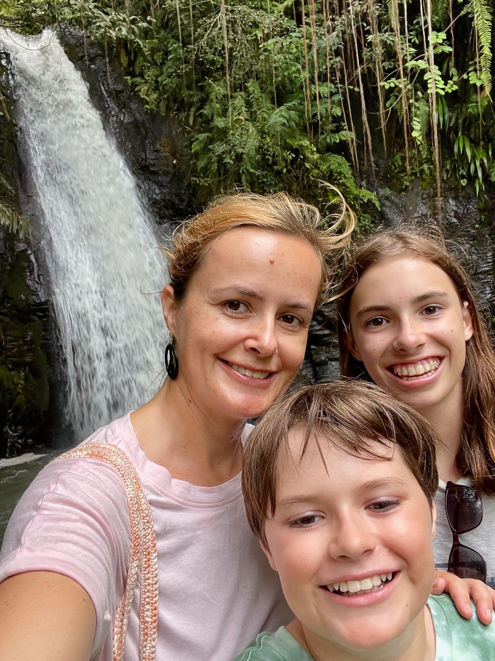 We walk further along the path from the waterfall into a tiny little village then return to town for dinner at a hip looking hotel which looks very promising. Jake scores a burger and Graham a burrito, I eat a delicious vegetarian coconut curry and Lara sticks to nasi goreng (fried rice) proving her allegiance to Indonesian food. There are cold beers, fresh juices and a very cute puppy so the evening is a big success.
