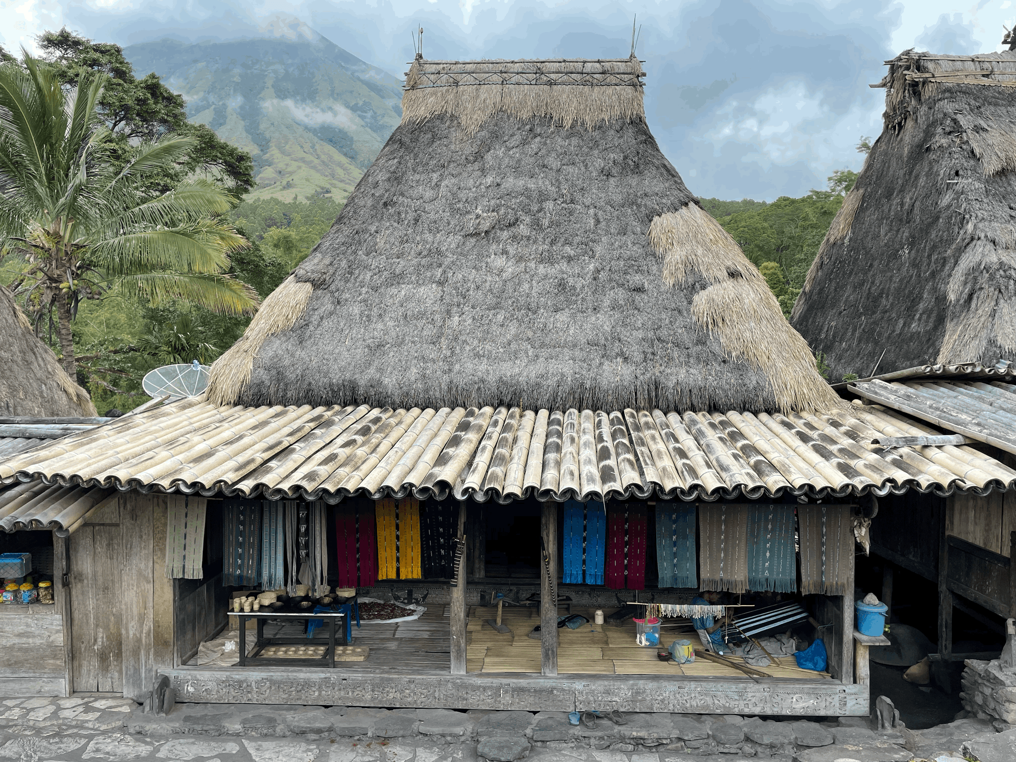 Bena is nestled at the foot of volcanic mount Inerie with one end of the village perched on top of a canyon with sweeping views down the green slopes leading all the way to the ocean.