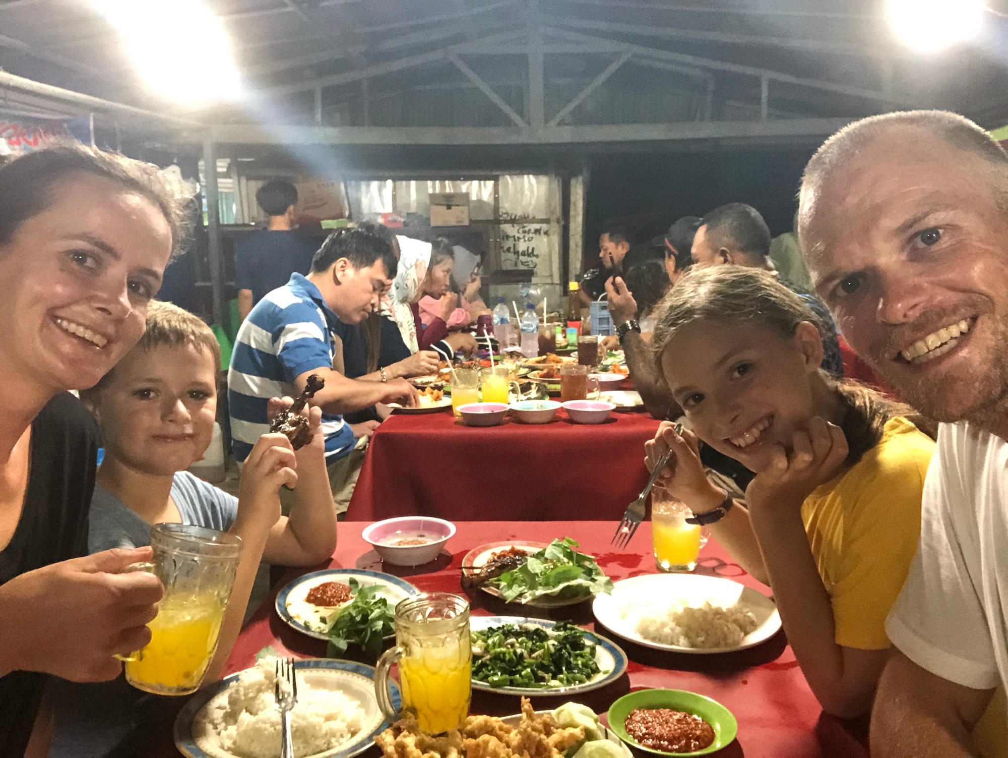 While Graham got to boat work with the locals, the kids and I explored various shopping centres, enjoyed dining at a fancy air-conditioned Pizza Hut restaurant, and hit the ubiquitous Fun Station games arcade where high decibels and strobe lights compete for attention. Not exactly the Indonesia I imagined but Lara and Jake loved it of course.