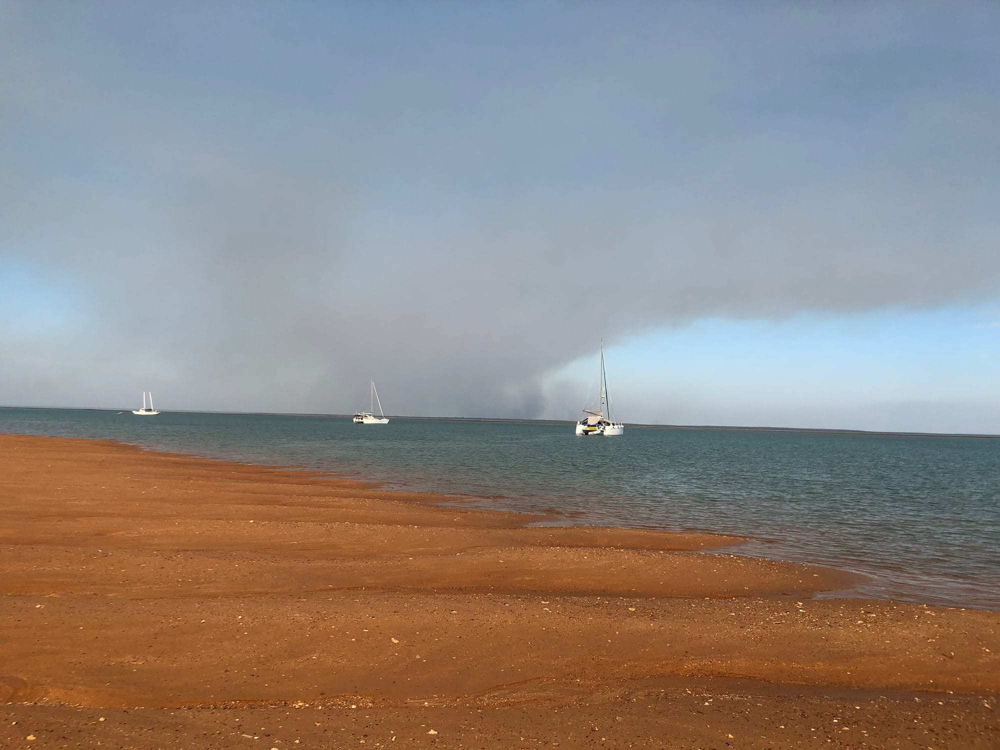 Smoke from back-burning and the only safe swimming hole on the island