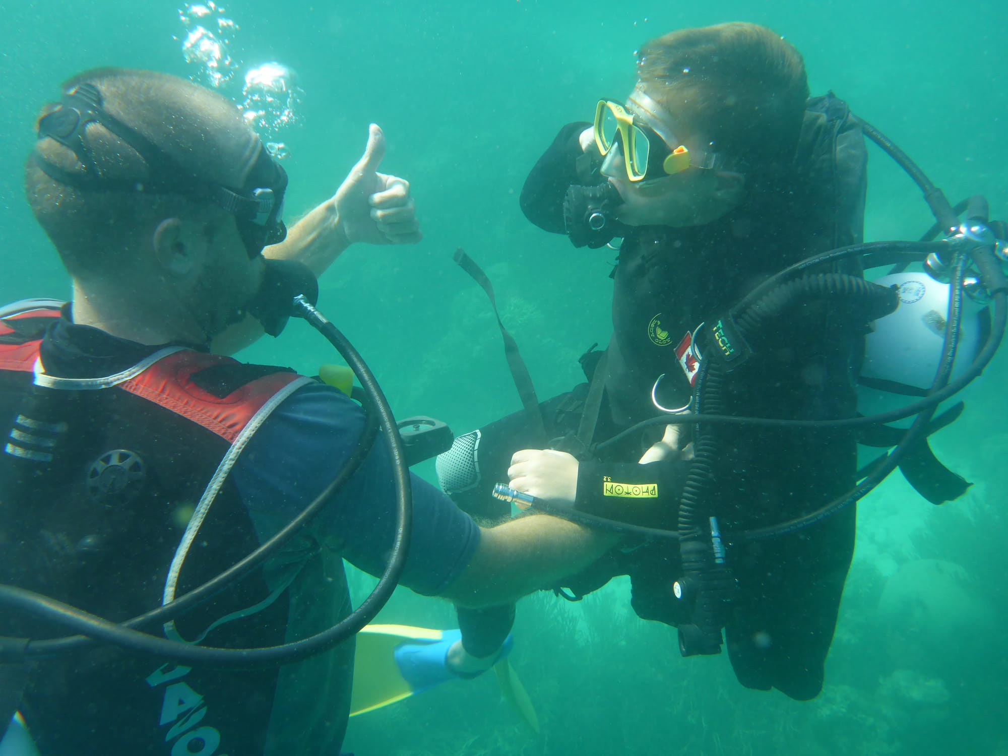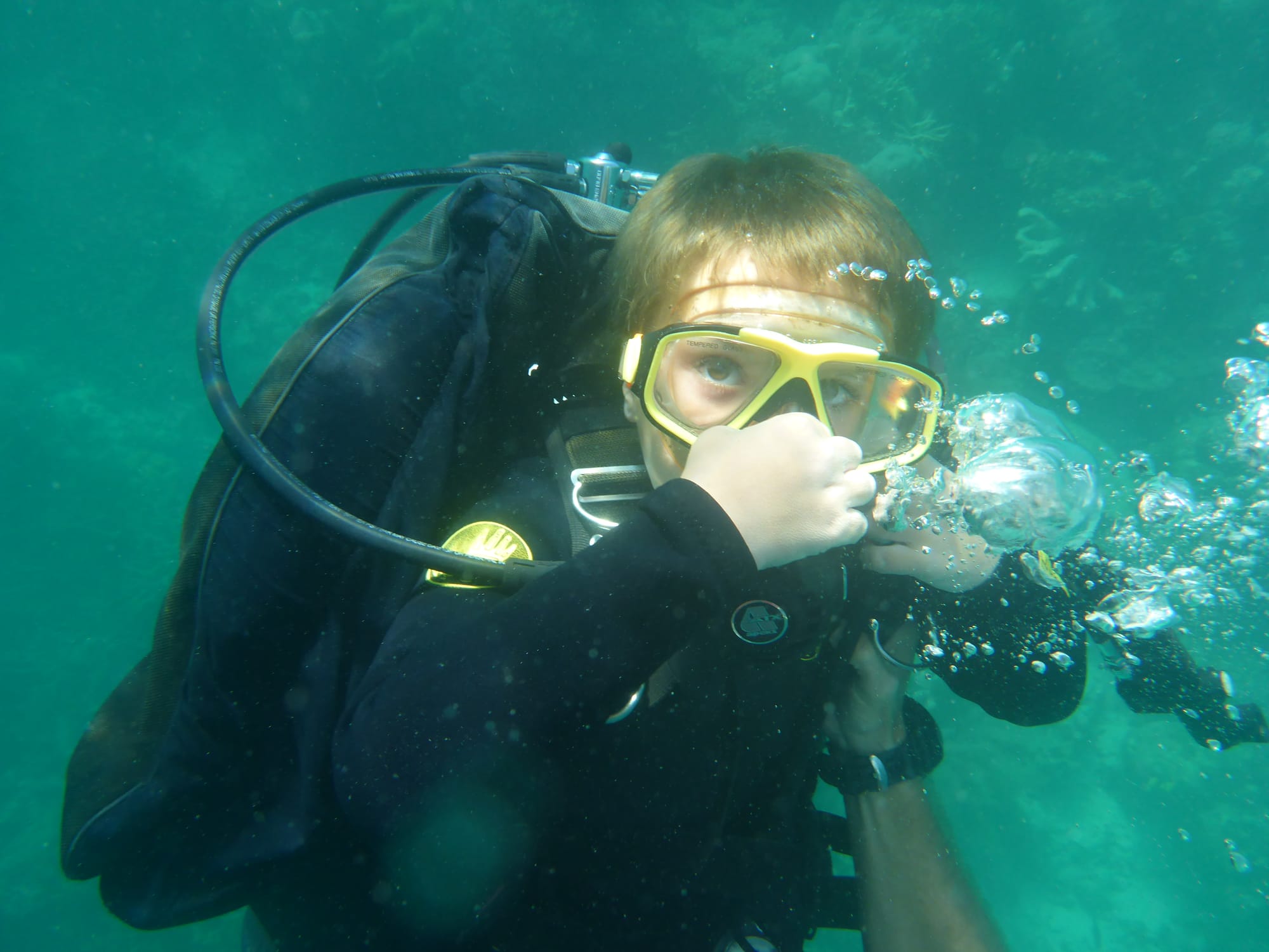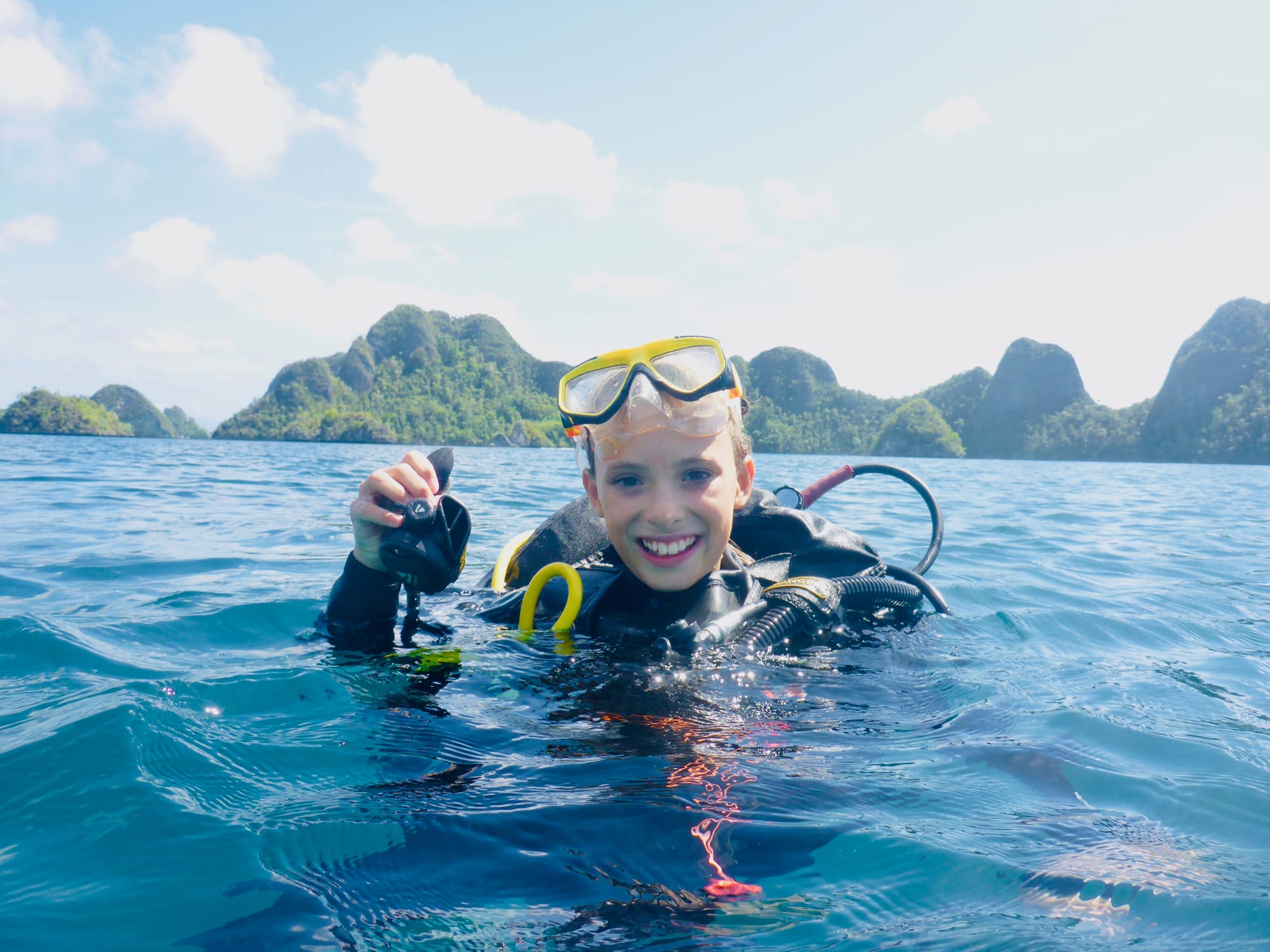 Lara and Jake try scuba diving for the first time with their friend Aya and Chris from Family Circus as instructor. Chris spends hours patiently teaching them in and out of water. The verdict? They both love it and how could you not in surroundings like this one.