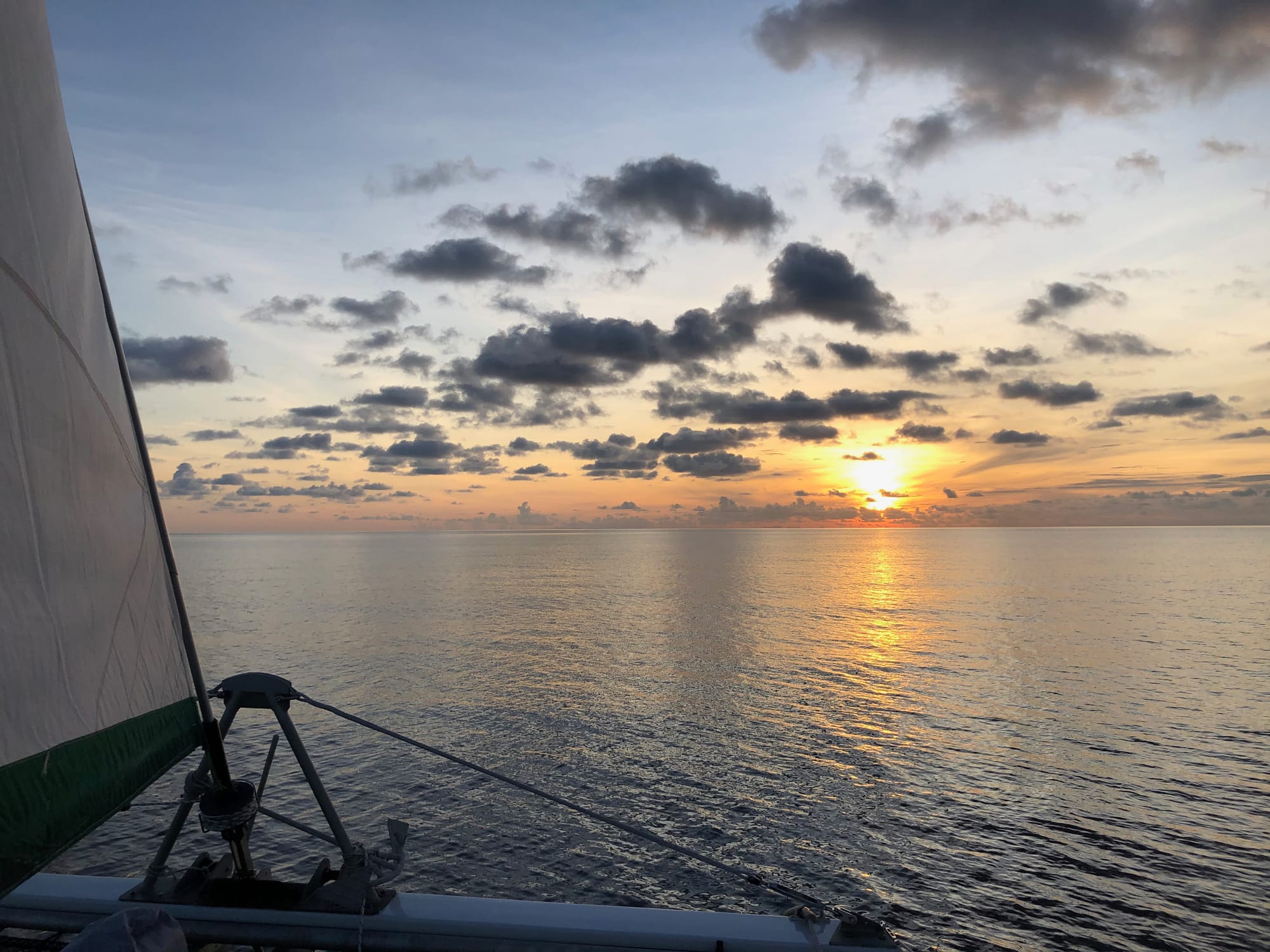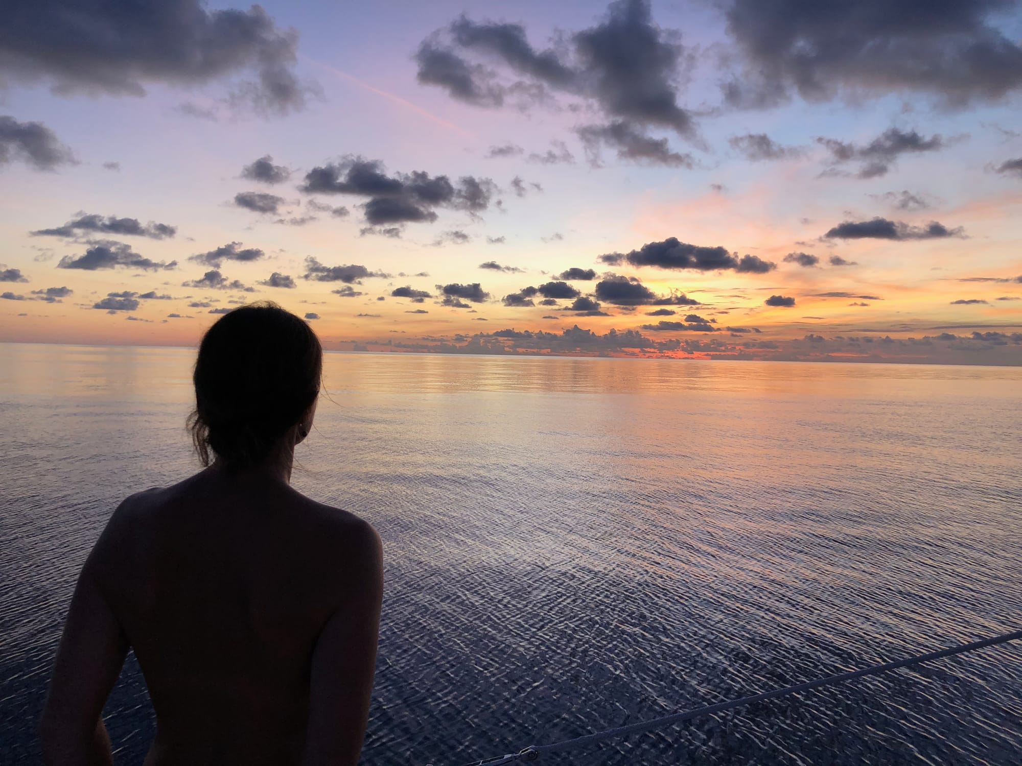 We enjoy the calmest four day passage we’ve ever had with sunrises and sunsets over glassy seas and curious sea creatures our only company.
